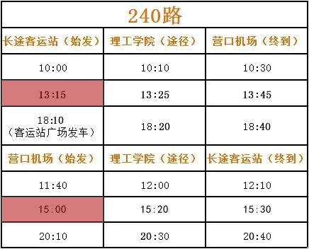 從2017年4月10日起,240路機(jī)場(chǎng)專(zhuān)線由每日下午1:15(客運(yùn)站發(fā)車(chē));15:00(藍(lán)旗機(jī)場(chǎng)發(fā)車(chē)),更改為每周二、四、六下午發(fā)班,每周一、三、五、七停運(yùn)。