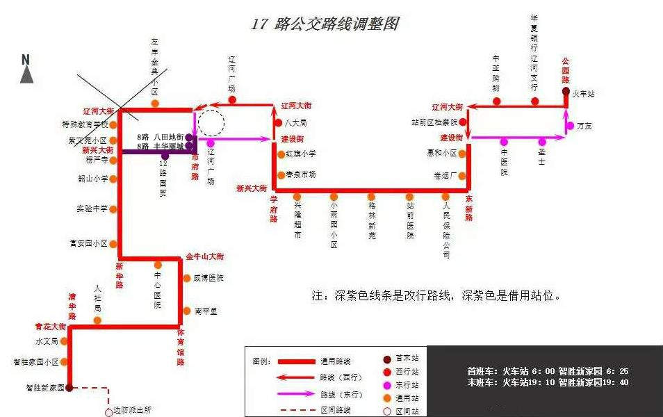 經(jīng)與公共事業(yè)局道路維修部門溝通得知,新華路沿線新興大街至遼河大街路段封閉施工,根據(jù)公共事業(yè)局施工部門所提供的封閉施工路段,現(xiàn)對公交17路部分路段進行調整。具體安排如下: